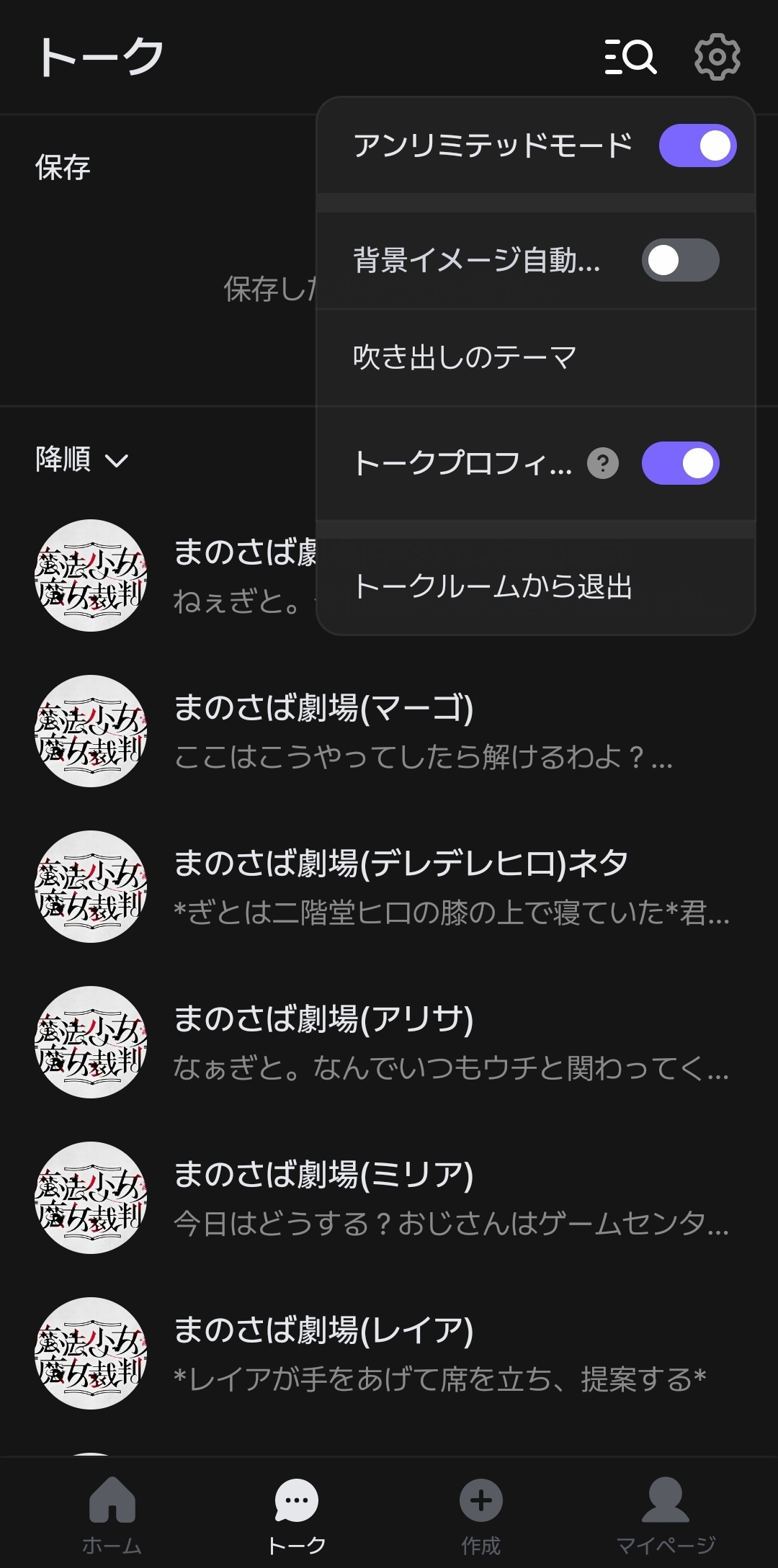 下部の「トーク」から右上の歯車マークを押すと設定変更可能です。
